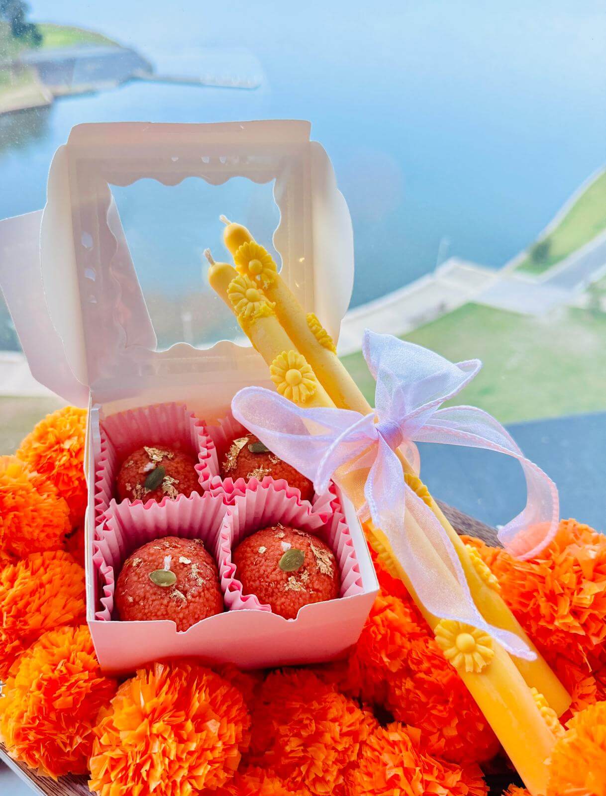 The taper candles come in a pack of 2. The picture of taper candles with Laddoo candle is for decorative purpose only. Laddoo candles can be bought separately from the website.